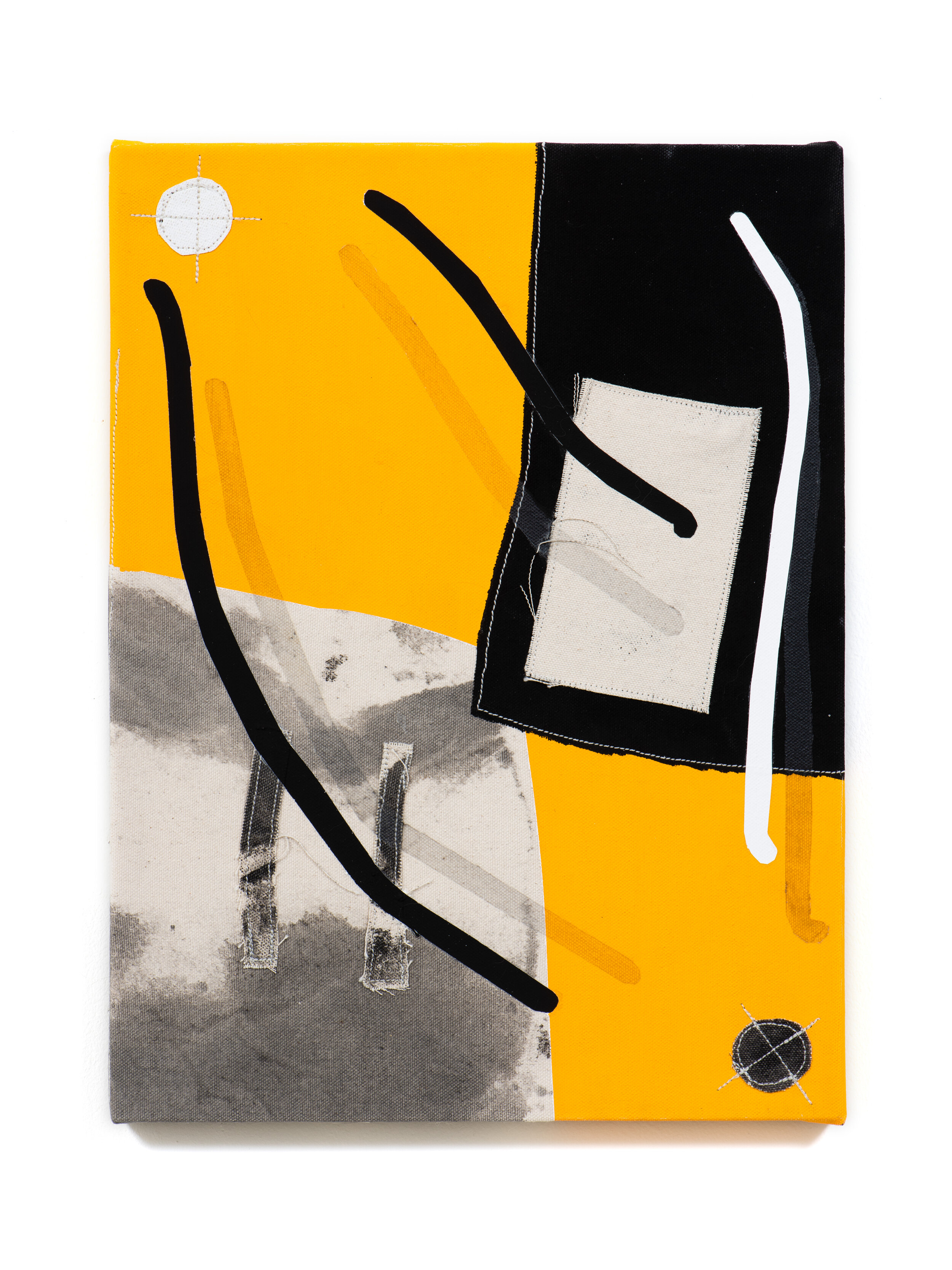 Flashe, graphite, acrylic, thread, and canvas on canvas